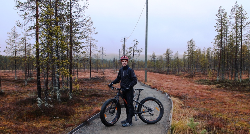 Pääsimme kokeilemaan Fatbike-pyöräilyä Ylläksen maastopyöräilyreiteillä. Merkittyjä reittejä on n. 150 km ja niistä on saatavilla myös oma kartta. Talvella merkittyjä reittejä on n. 70 km.