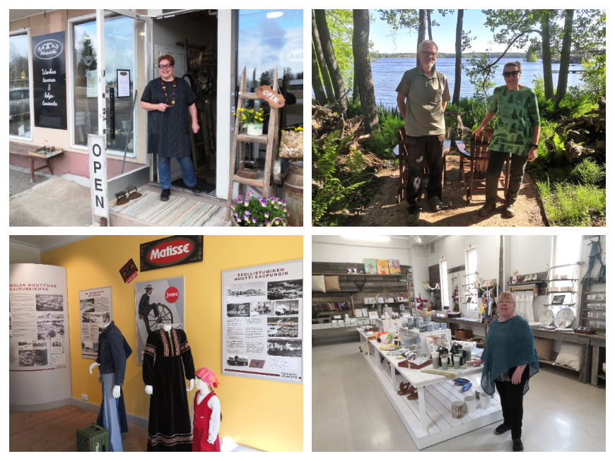 Juttumme ihanista putiikeista (vas. ylh. Patinaputiikki & Jaana), Lohjan kohteista (oik. Arboretum Magnolia & Suvi ja Esa), Heinolan kuulumisista (kyllä, kuvassa aidot James-farkut kaupunginmuseon näyttelyssä!) sekä Someron Pellavaenkelistä (Rauni) ovat olleet kesäkauden 2022 luetuimpia, tänä vuonna julkaistuja juttujamme. Kuvat: KIvaaTekemista.fi