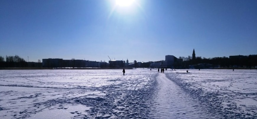 Kuvassa upean pääkaupunkimme Töölönlahti parhaimmillaan jää- ja lumipeitossaan kirpsakassa pakkasessa 22.2. Ympärillä lukuisat Suomi-ikonit Olympiastadionista Oopperataloon, Finlandiatalosta Kansallismuseon kautta Musiikkitaloon - Linnunlaulun majesteettisia huviloita ja Lintsiä unohtamatta! Kuva: KivaaTekemistä.fi